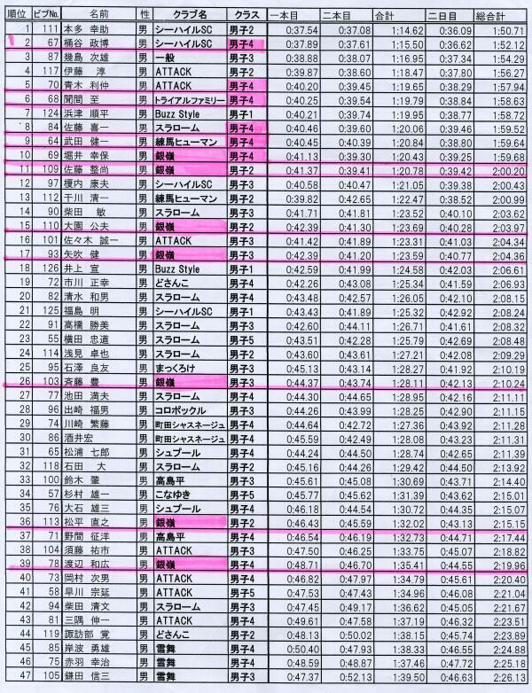 恐るべし60歳代が上位10位までに6名も入っている。