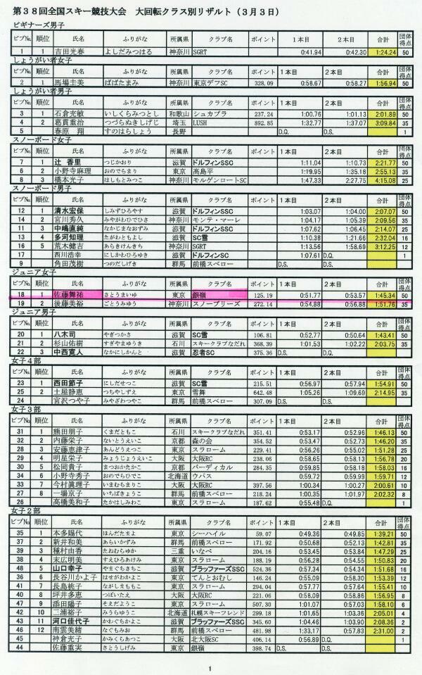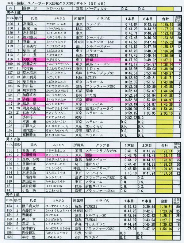 大回転一本目で情けない順位なので思い切り行こうとして