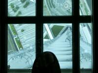 (反射して映っている) 下が見えるけどあまり見たくない