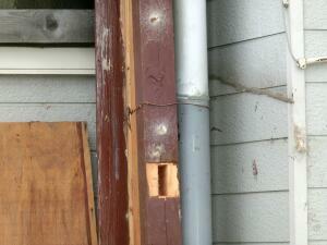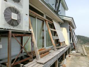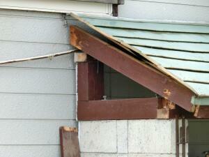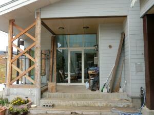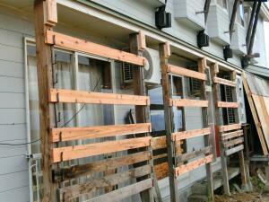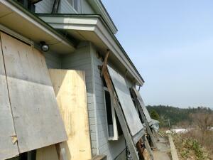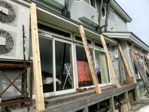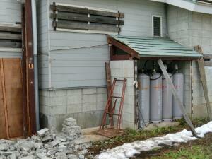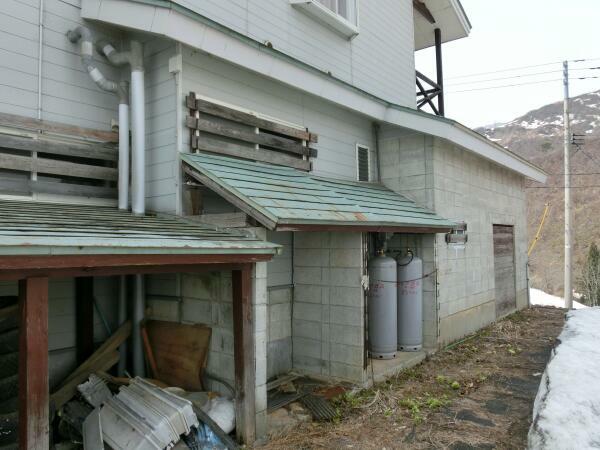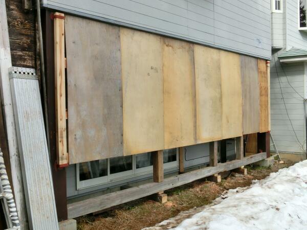 プロパン小屋屋根破損(雪で浮き上がり) ネジレ金具補強