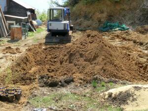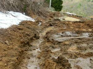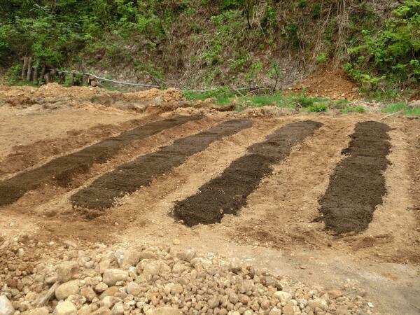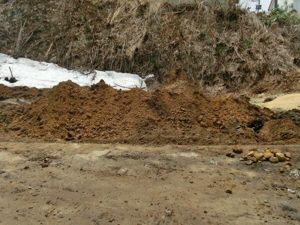 雪解け水が畑用地に浸入してくるので排水溝を設置しました。