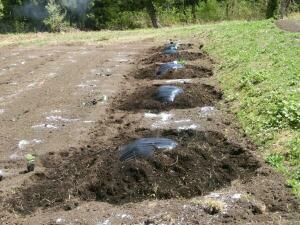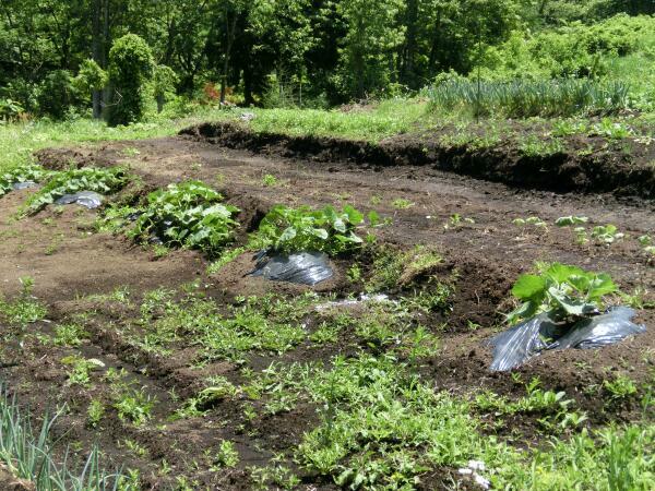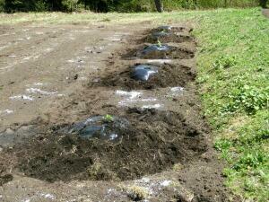 カボチャ・糸うり・夕がおの植付中 2014.5.7